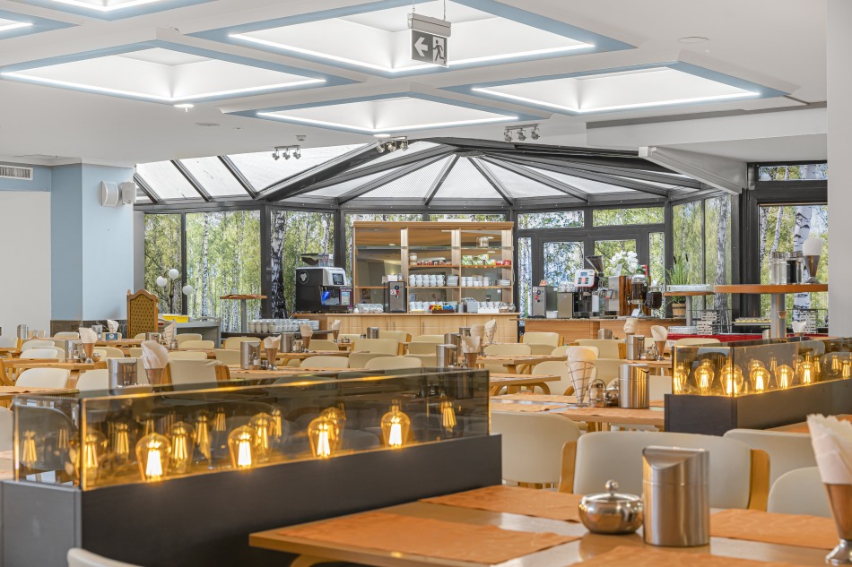 Serdecznie Państwa zapraszamy do klimatyzowanej, eleganckiej i przestronnej sali restauracyjnej. Słyniemy z różnorodności oraz bogactwa dań serwowanych w formie bufetu szwedzkiego.